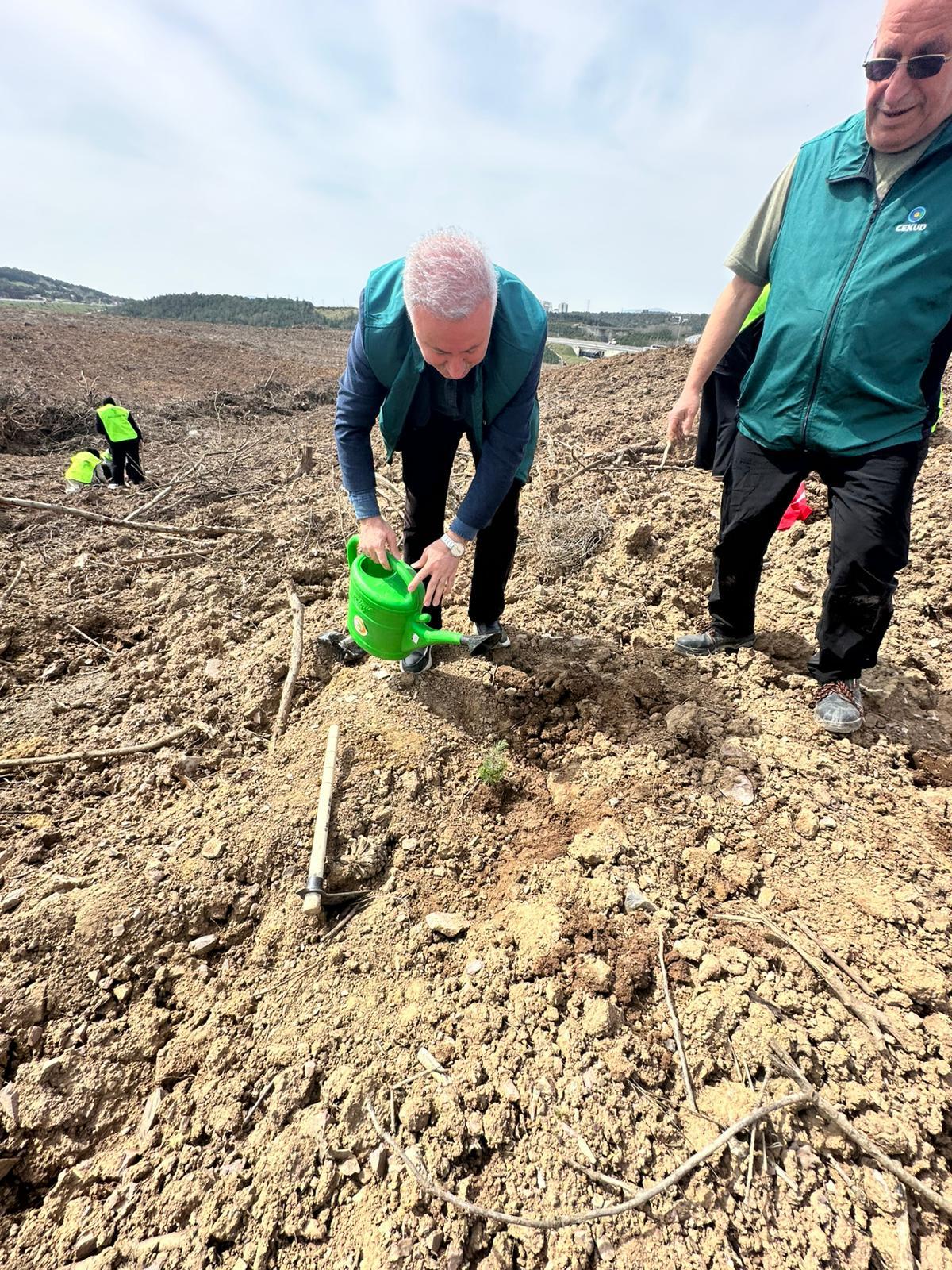 Konuşmaların ardından dikimi gerçekleştirilen fidanlara can suyu verildi.