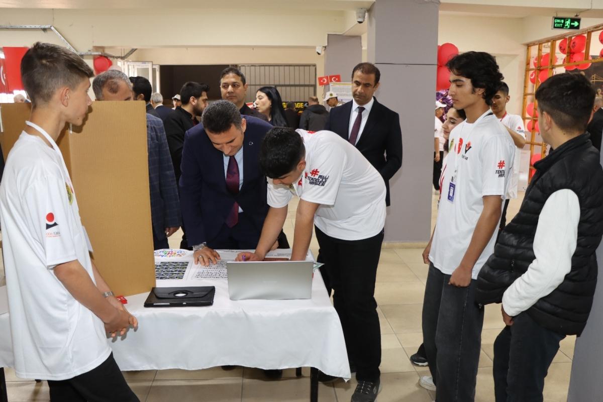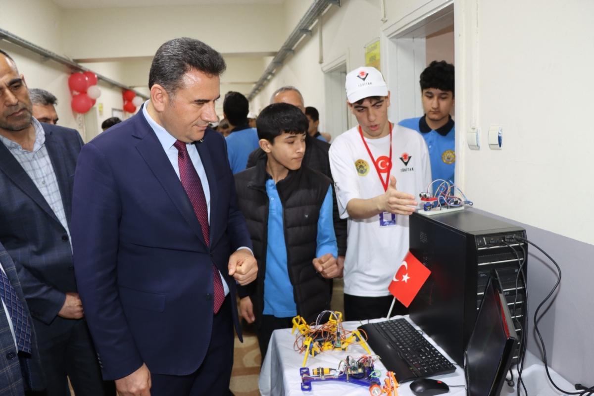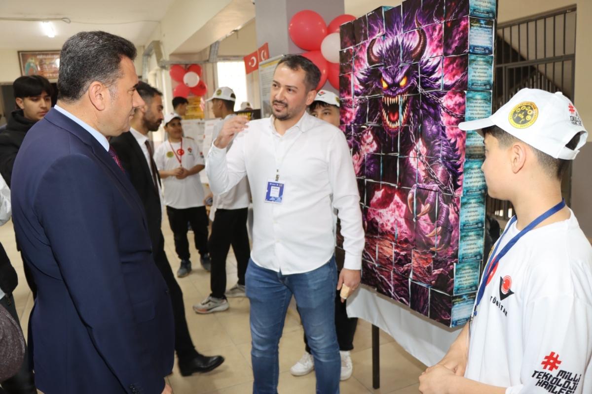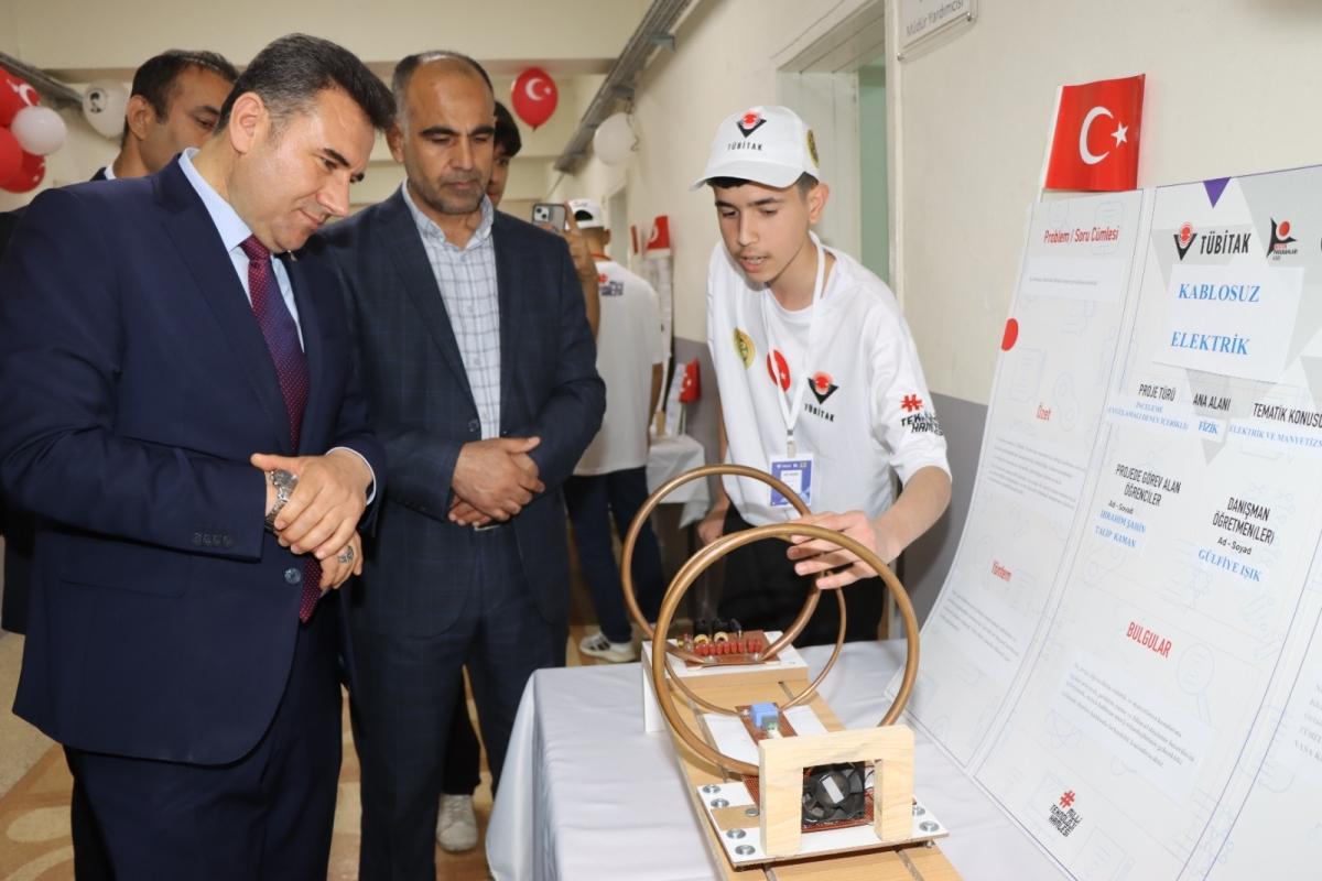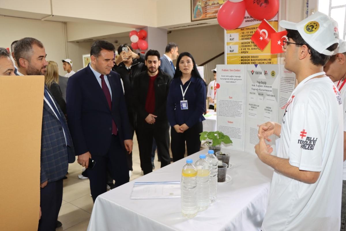 Proje stantlarını gezerek öğrencilerden çalışmalar hakkında bilgi alan İlçe Milli Eğitim Müdürü Lütfü Başli, öğrencilerin ortaya koyduğu emek ve başarıdan duyduğu memnuniyeti ifade etti.