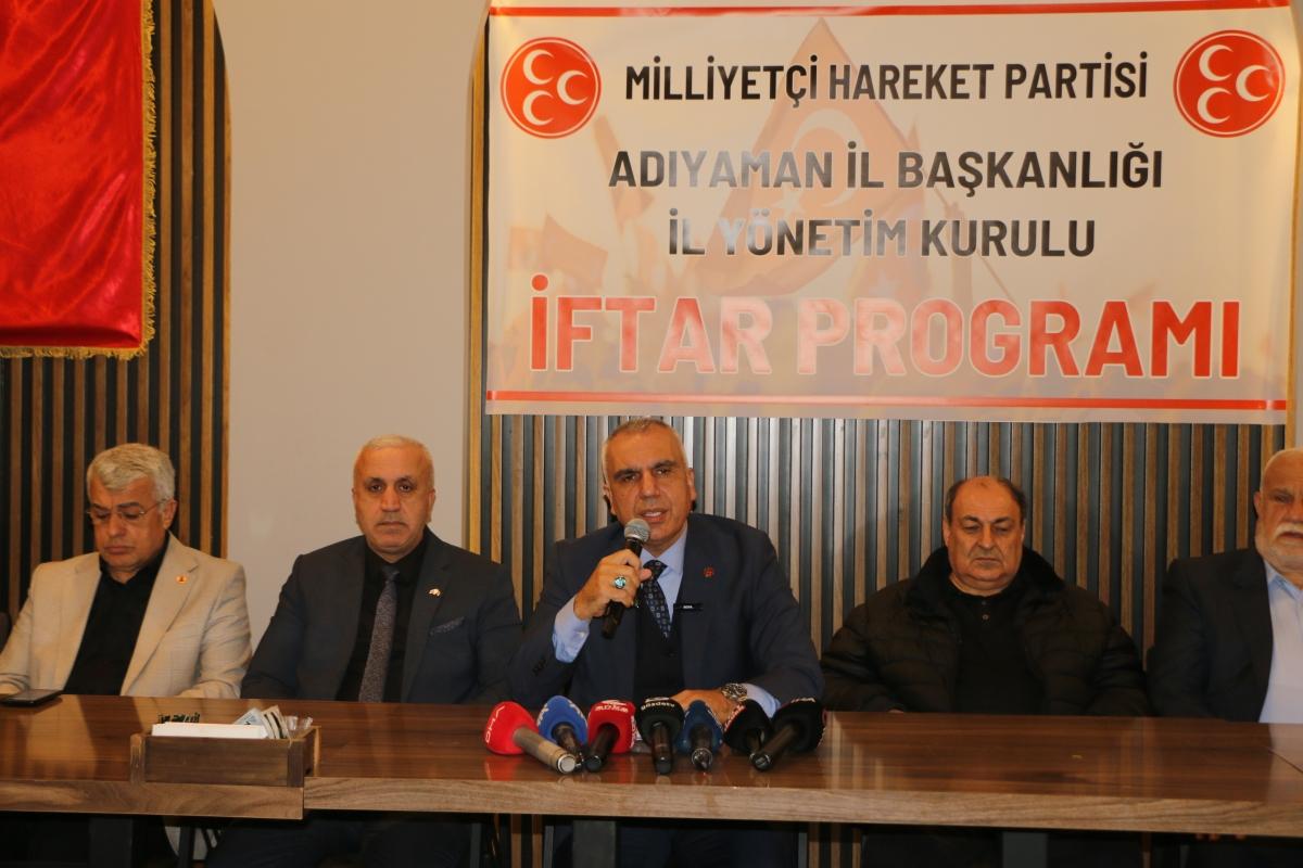 ADIYAMAN (PERRE) - Şeriban ÖZÇAKMAK-Berfin GÜRBÜZ - Milliyetçi Hareket Partisi Adıyaman İl Başkanlığı tarafından düzenlenen iftar programında konuşan İl Başkanı İsmail Gümüş, "Adıyaman'da konteynerlerde ve prefabrik evle...