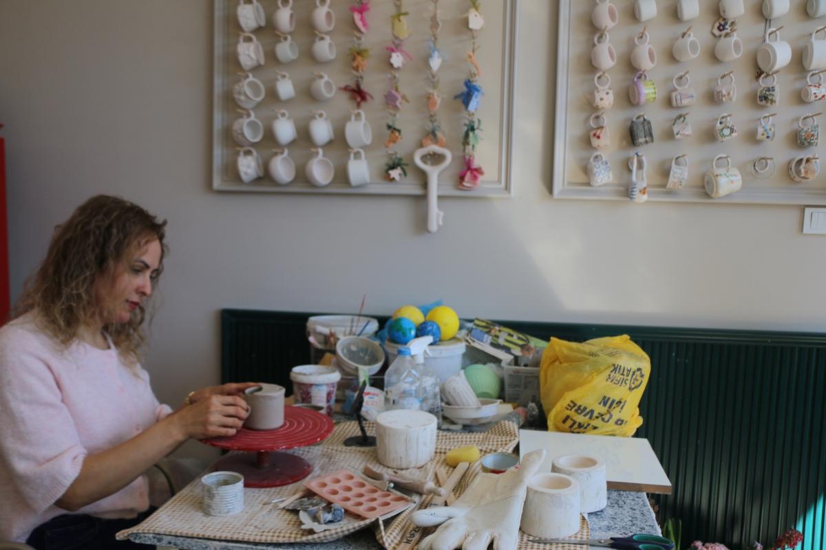 Çini ve seramik üzerine kurduğu işletmede hem üretim yapan hem de bu alanda kadınlara eğitim veren Yapıcı, kadınların ekonomik özgürlüklerini kazanmasının önemine dikkat çekti.
