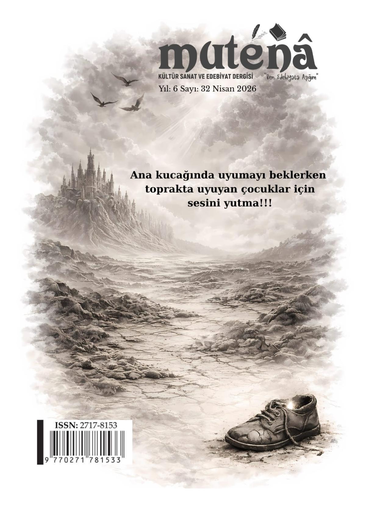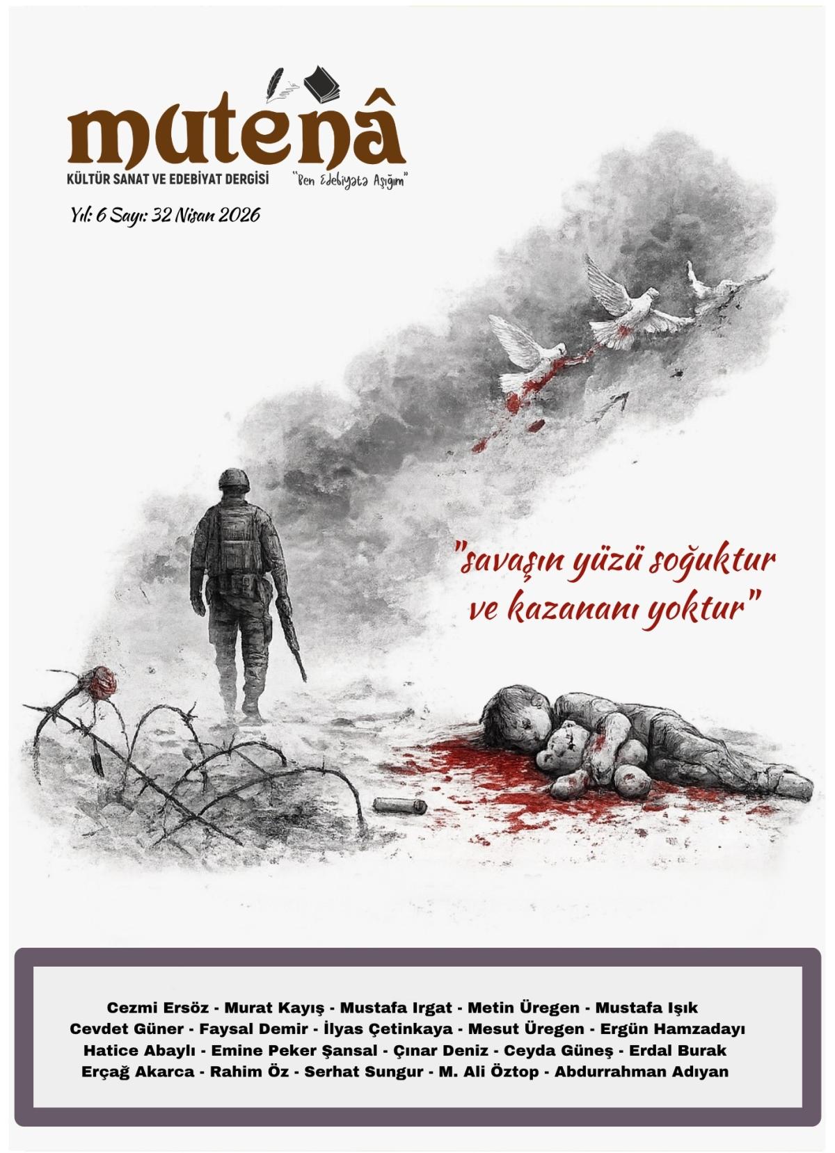 Mutenâ dergisi, yeni sayısında dünyanın farklı coğrafyalarında yaşanan savaşların yarattığı insani tabloya dikkat çekiyor. Dergi, "Ana kucağında uyumayı beklerken toprakta uyuyan çocuklar için sesini yutma" çağrısıyla, özellikle savaş mağduru çocukların yaşadığı trajediyi gündeme taşıyor. Bu çerçevede hazırlanan sayıda çok sayıda yazar ve şairin katkısıyla geniş bir içerik sunularak toplumsal farkındalık oluşturulması hedefleniyor.