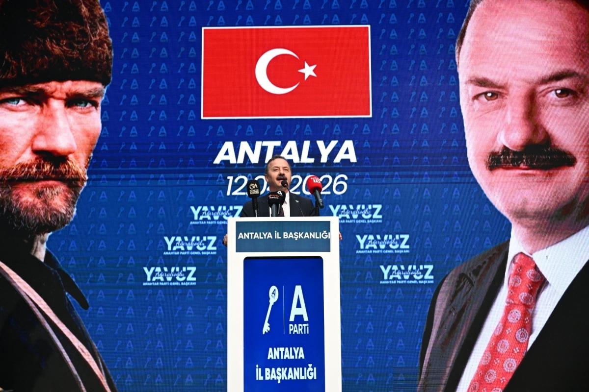 Antalya'daki halk buluşmasında konuşan Anahtar Parti Genel Başkanı Yavuz Ağıralioğlu, "Netanyahu, Anahtar Parti'nin nerede durduğunu bilsin! Biz devlet biliriz. Tayyip Bey ile siyasi rekabet edebiliriz. Ama dışarıdan devletimize parmak sallandı mı, bir ve beraberiz" mesajı verdi. "Kamuda lale dönemi, yönetimde sülale dönemi var" diyen Ağıralioğlu, "Kanunla, kuralla bu lale-sülale dönemine son vereceğiz söz veriyoruz. Memlekette her işiniz için adam bulmak zorunda kalıyorsunuz. Her işiniz için kimlik kartınızı gösterince sizi duyabilen bir devlet göreceksiniz söz veriyoruz" dedi.